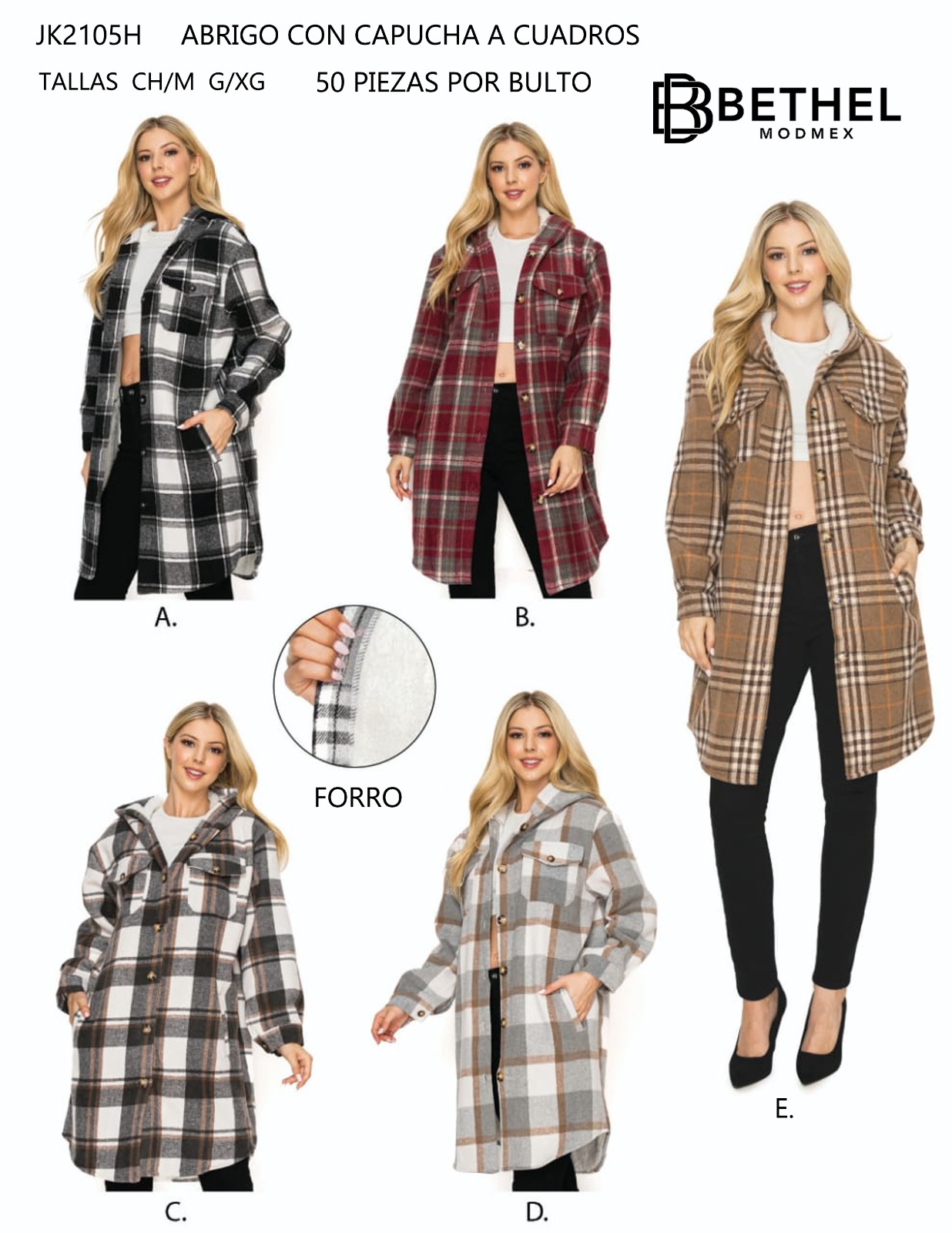 Abrigo con capucha a cuadros-JK2105Q
