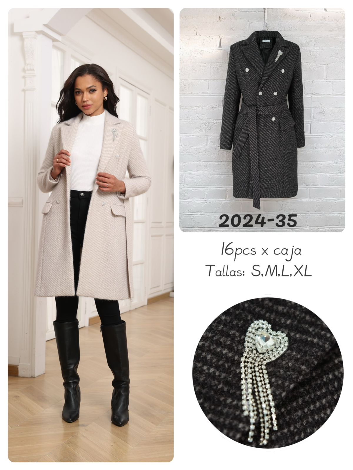 Abrigo doble botonadura con cinturón y broche de corazón-202435