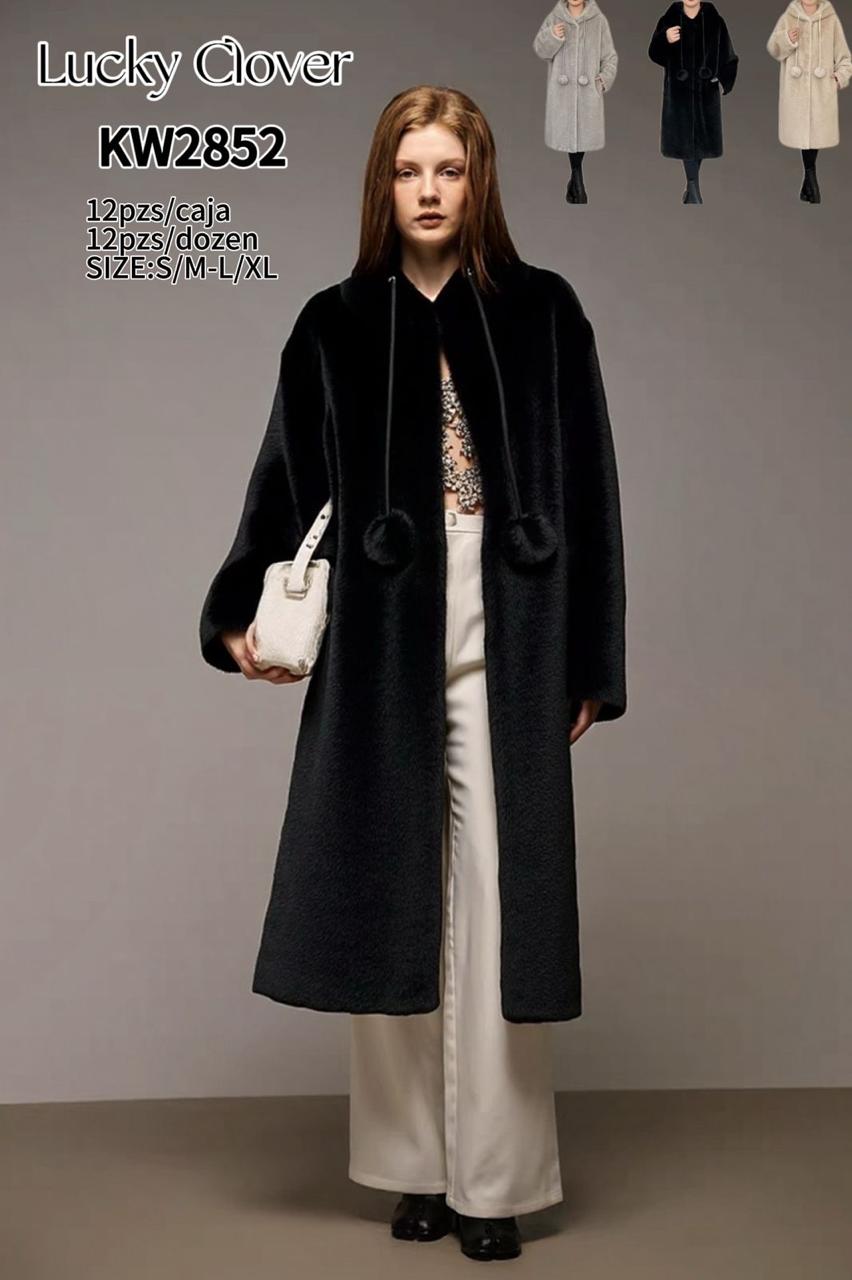 Abrigo largo de peluche con capucha-KW2852