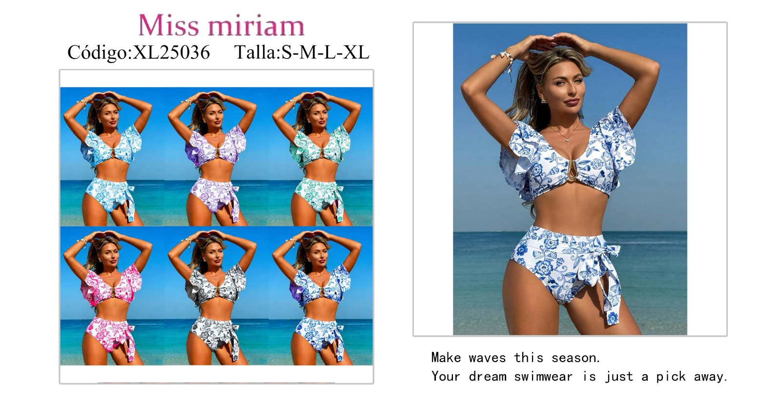 Bikini de dos piezas con top de volantes y estampado floral-XL25036