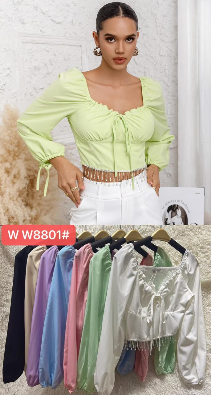 Blusa corta de manga larga con detalle de lazo-WW8801