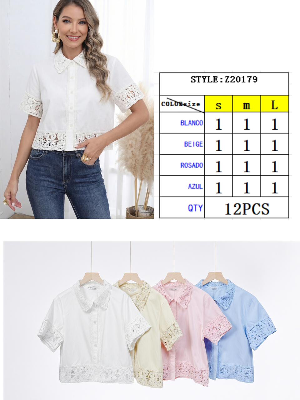Blusa de manga corta con encaje-Z20179