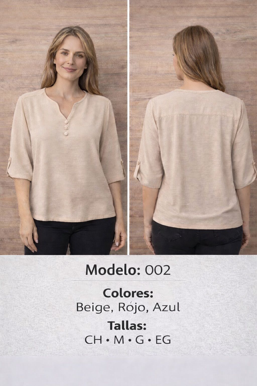 Blusa de mujer con cuello en V y mangas 3/4-002
