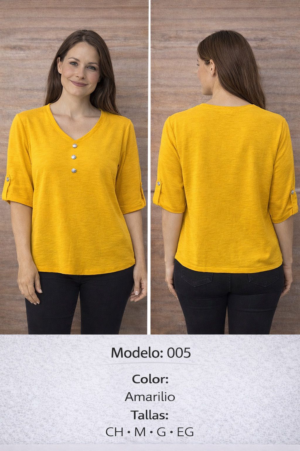 Blusa de mujer con cuello V y botones en las mangas-005