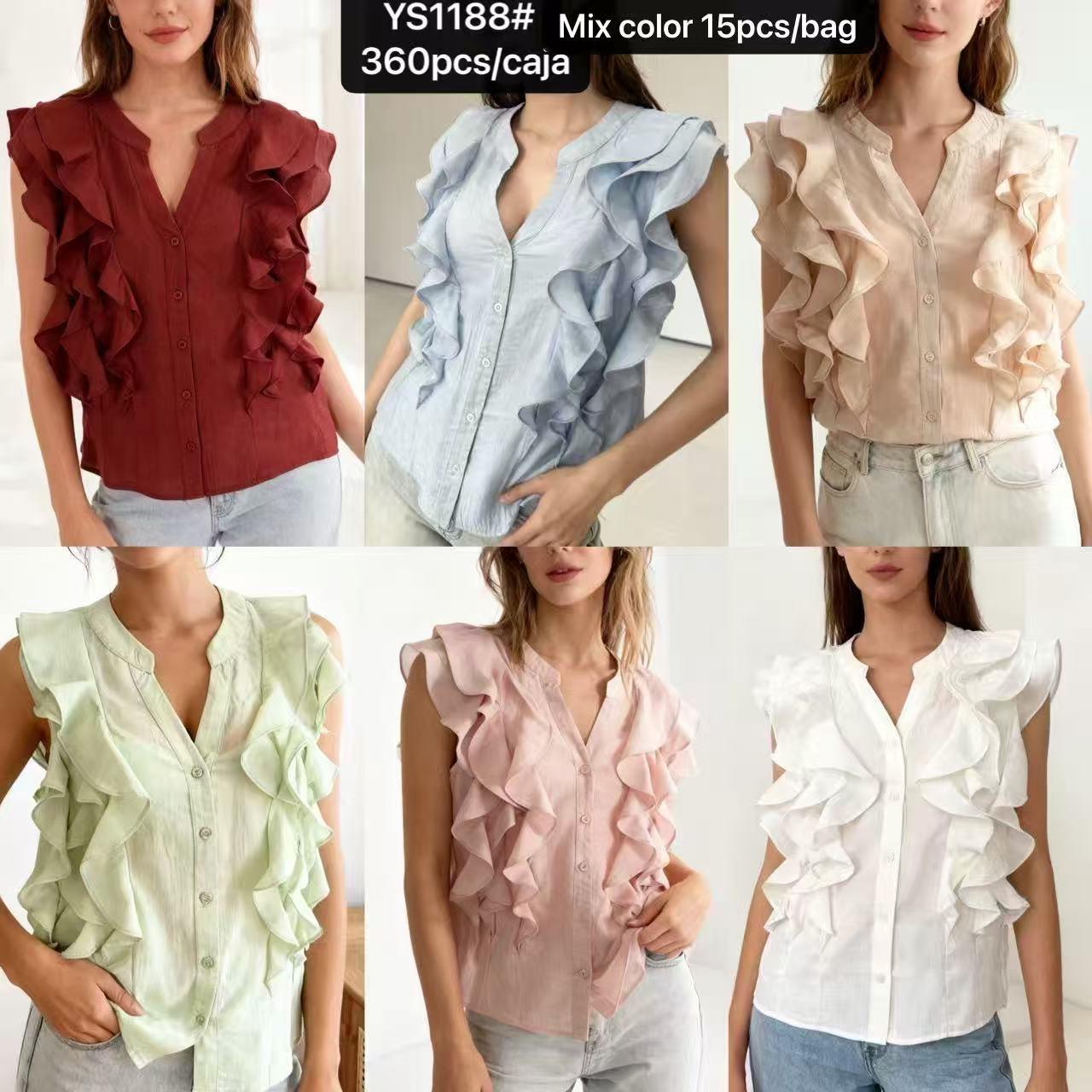 Blusa de mujer sin mangas con volantes-YS1188
