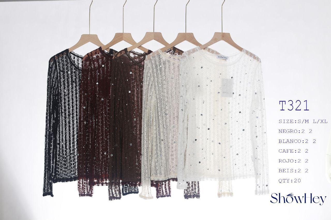 Blusa manga larga con lentejuelas-T321