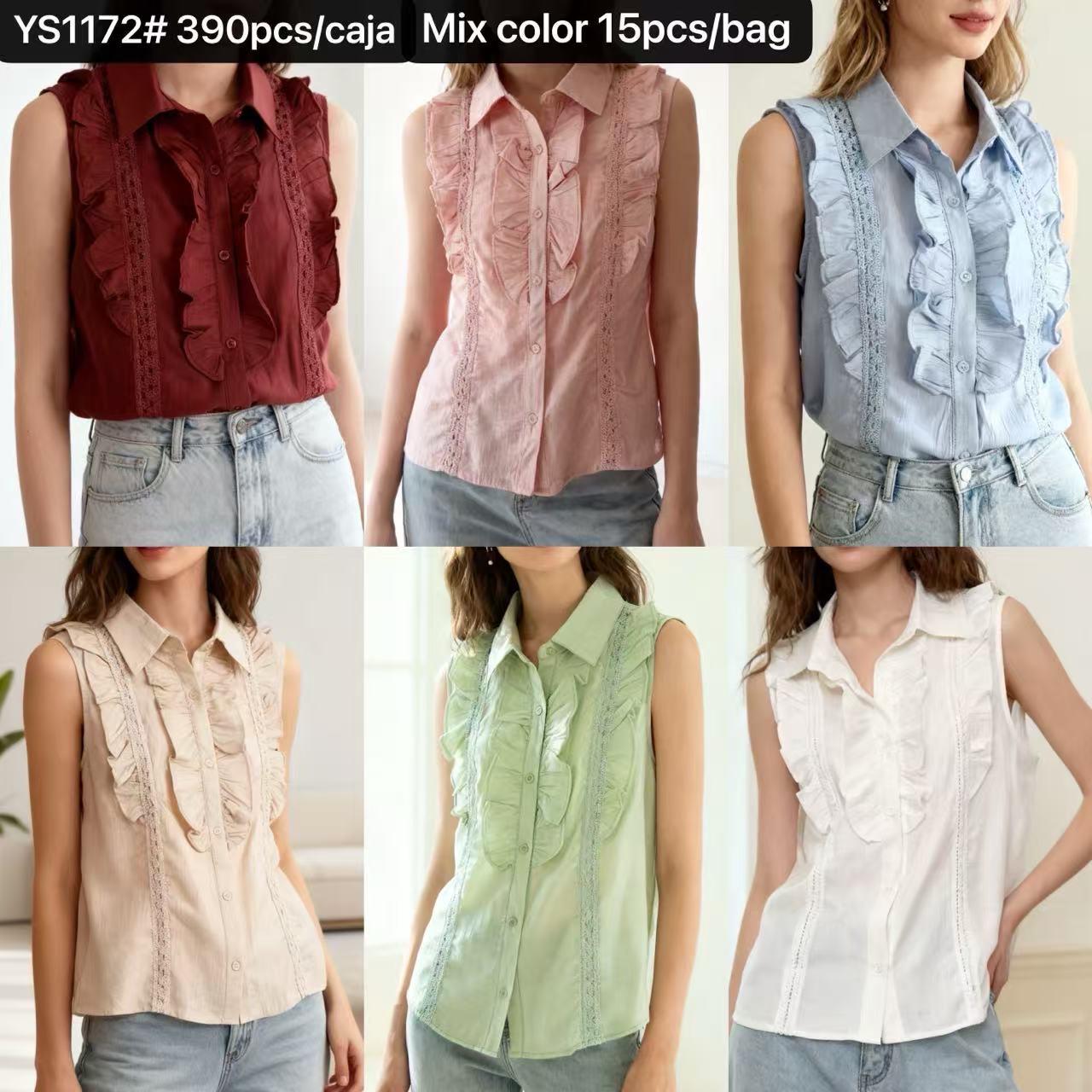 Blusa sin mangas con volantes y detalles de encaje-YS1172