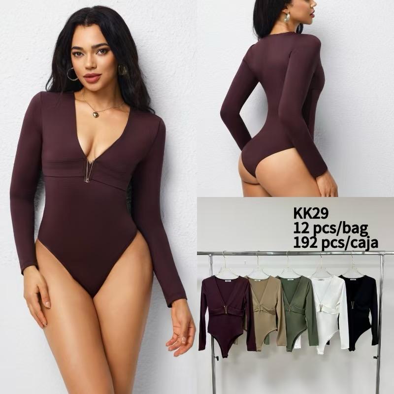 Body de manga larga con cremallera y escote en V-KK29