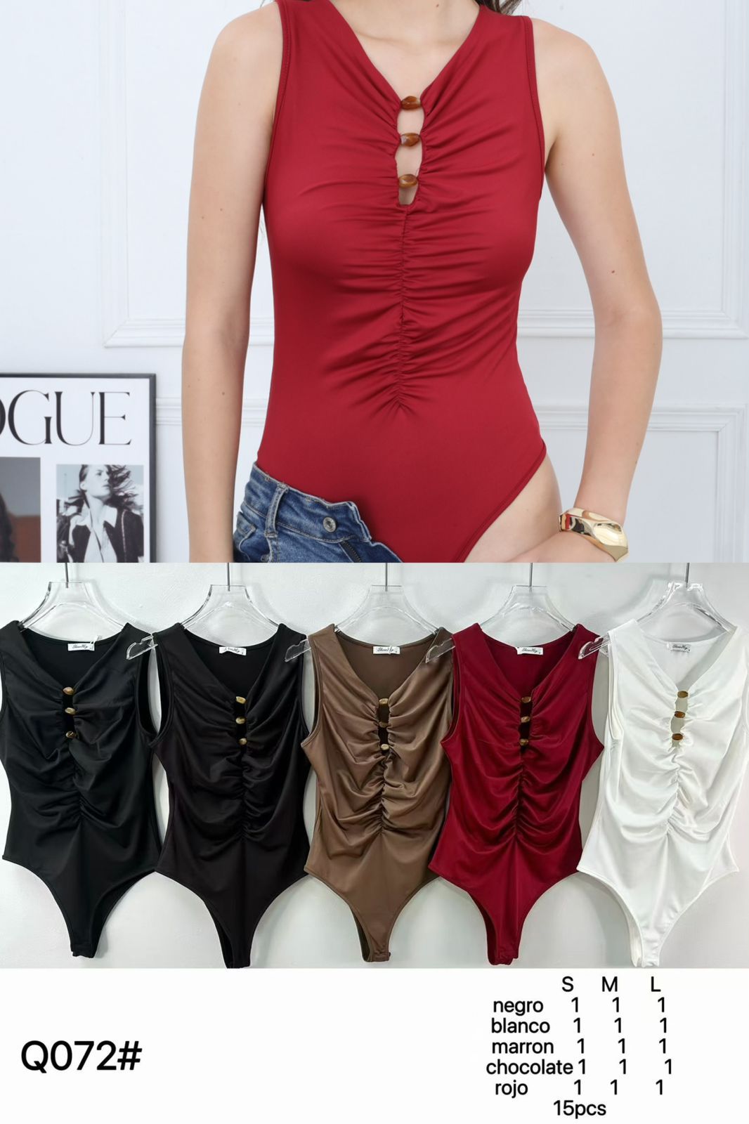 Bodysuit con fruncido y botones decorativos-Q072