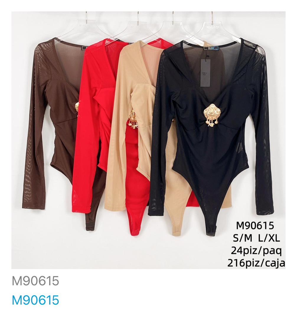 Bodysuit de manga larga con escote V y broche-M90615