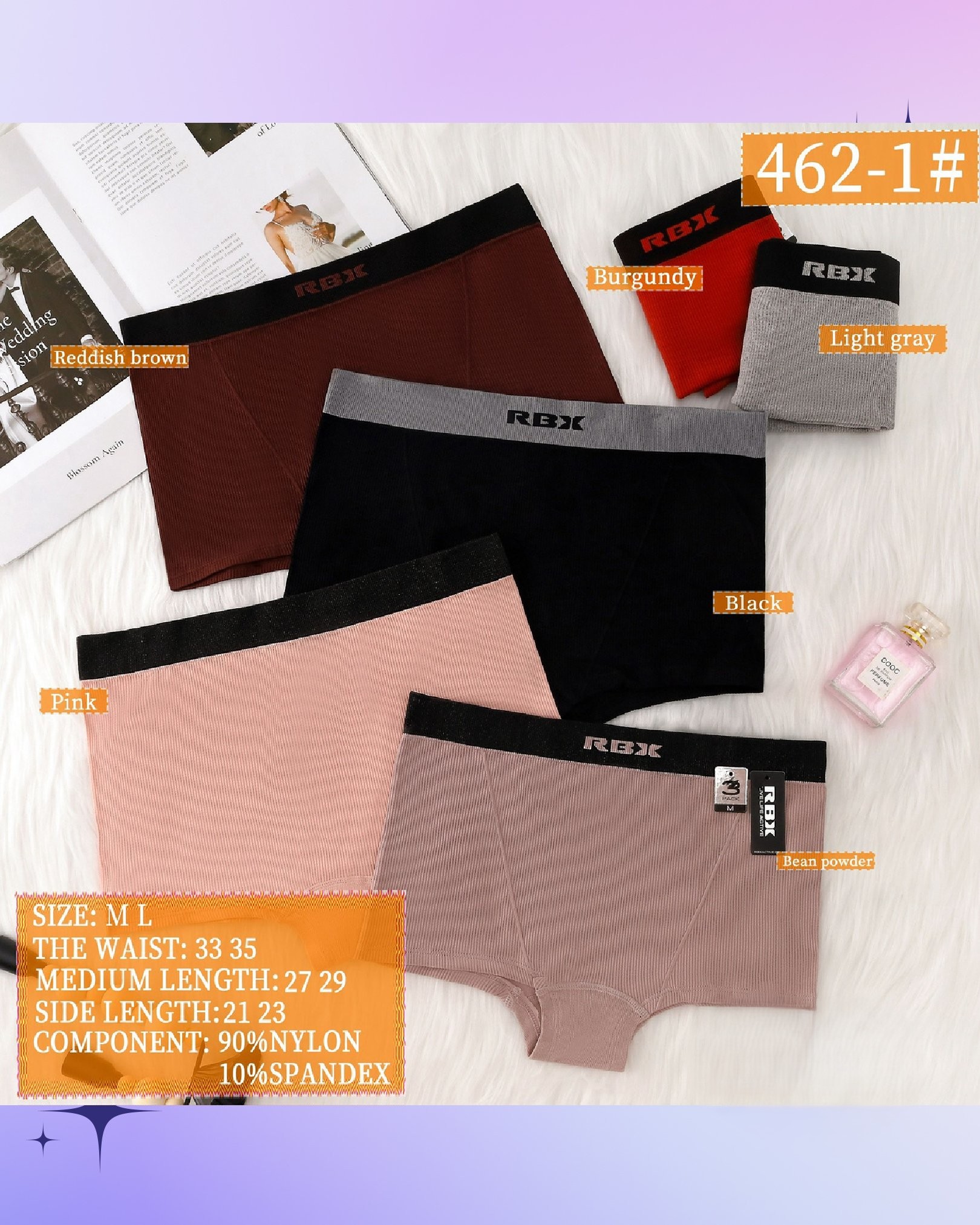 | Colores | REDDISH BROWN-BURGUNDY-LIGHT GRAY-BLACK-PINK-BEAN POWDER |
