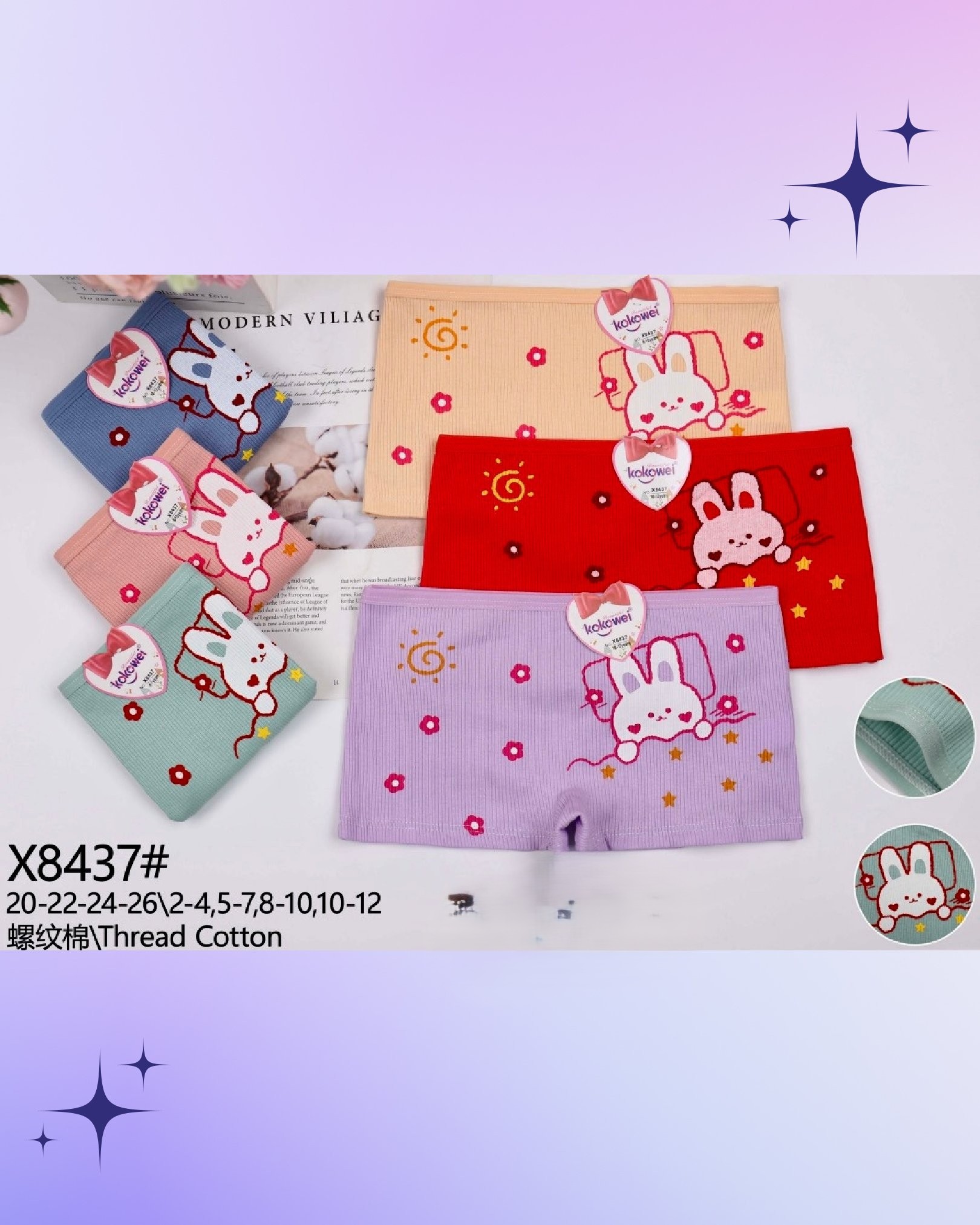 Bóxers de algodón para niñas con diseño de conejo-X8437