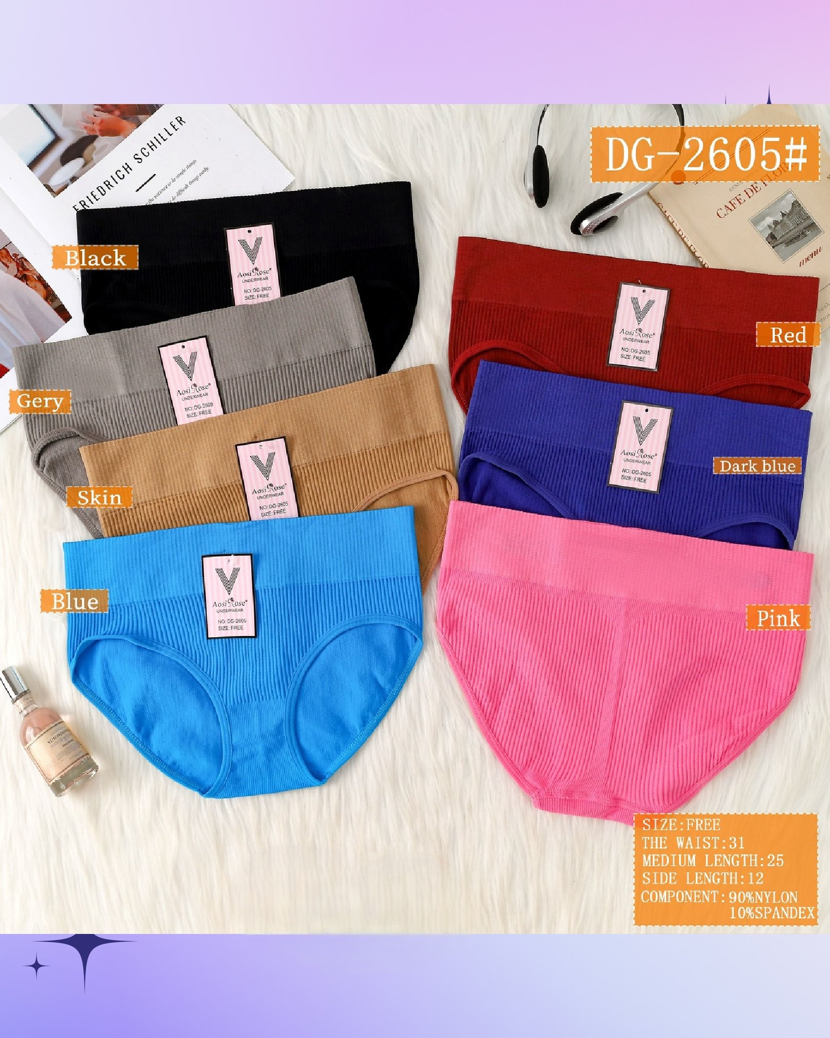 | Colores | BLACK-GREY-SKIN-BLUE-RED-DARK BLUE-PINK |