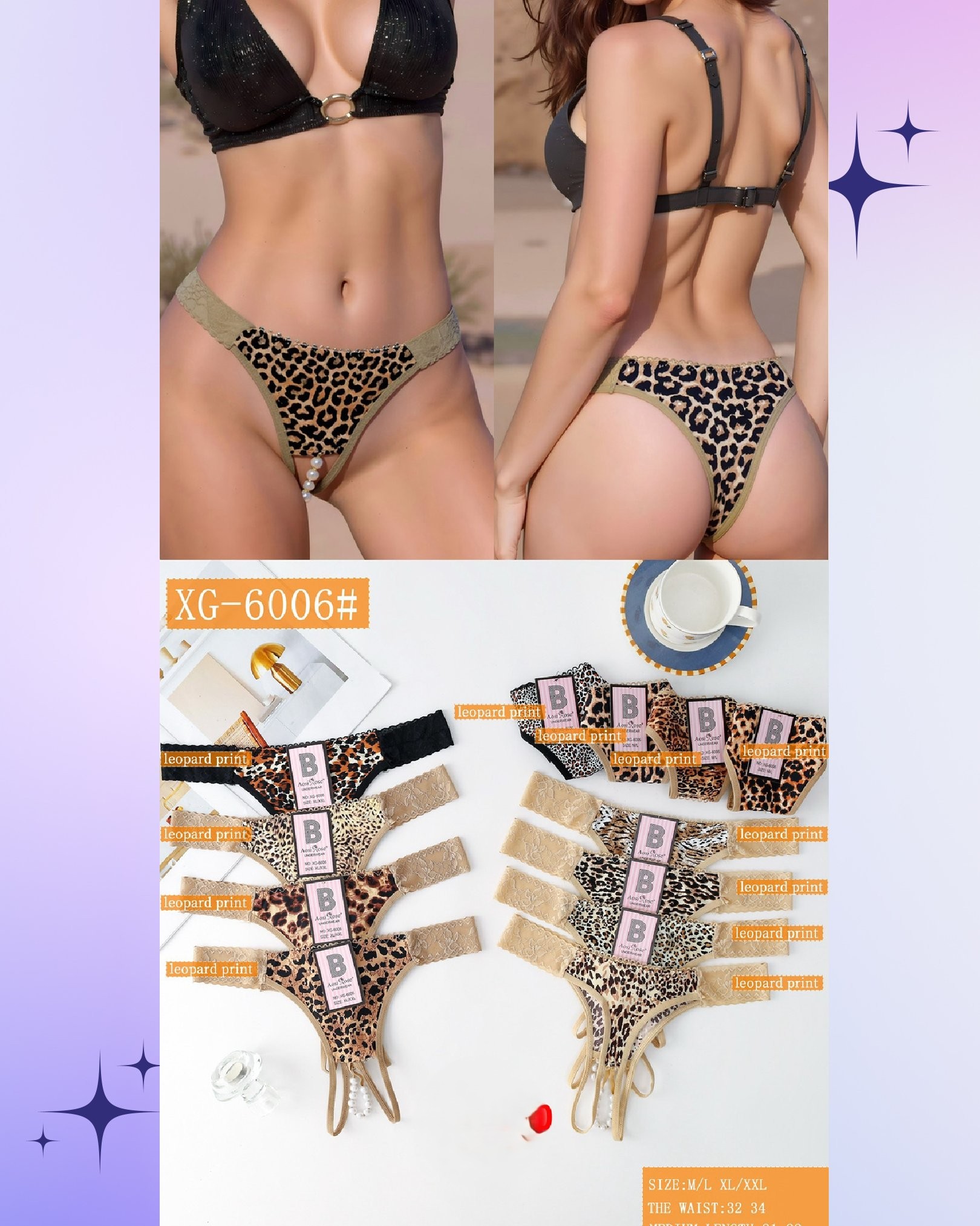 Braguitas estilo Tanga con estampado de leopardo y encaje-XG-6006