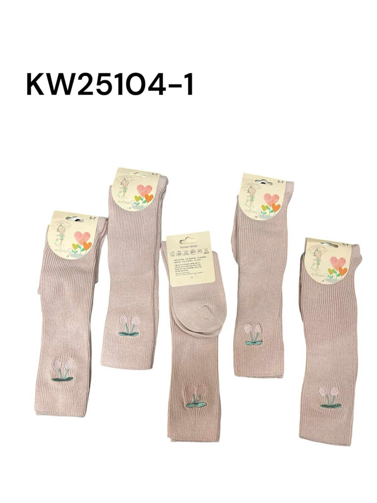 Calcetines altos de algodón con diseño floral-KW25104-1