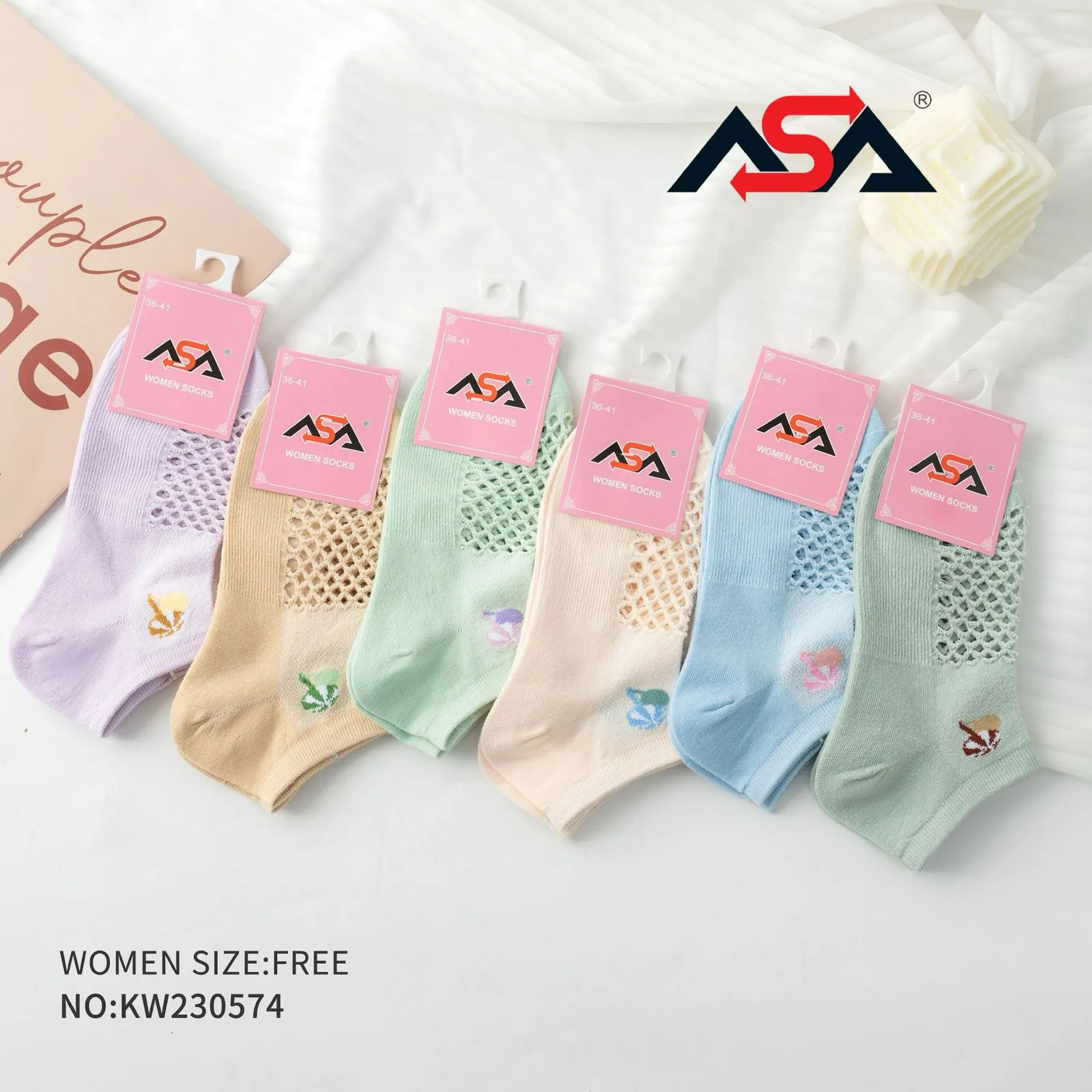 Calcetines de mujer con diseño de encaje y detalles florales-KW230574