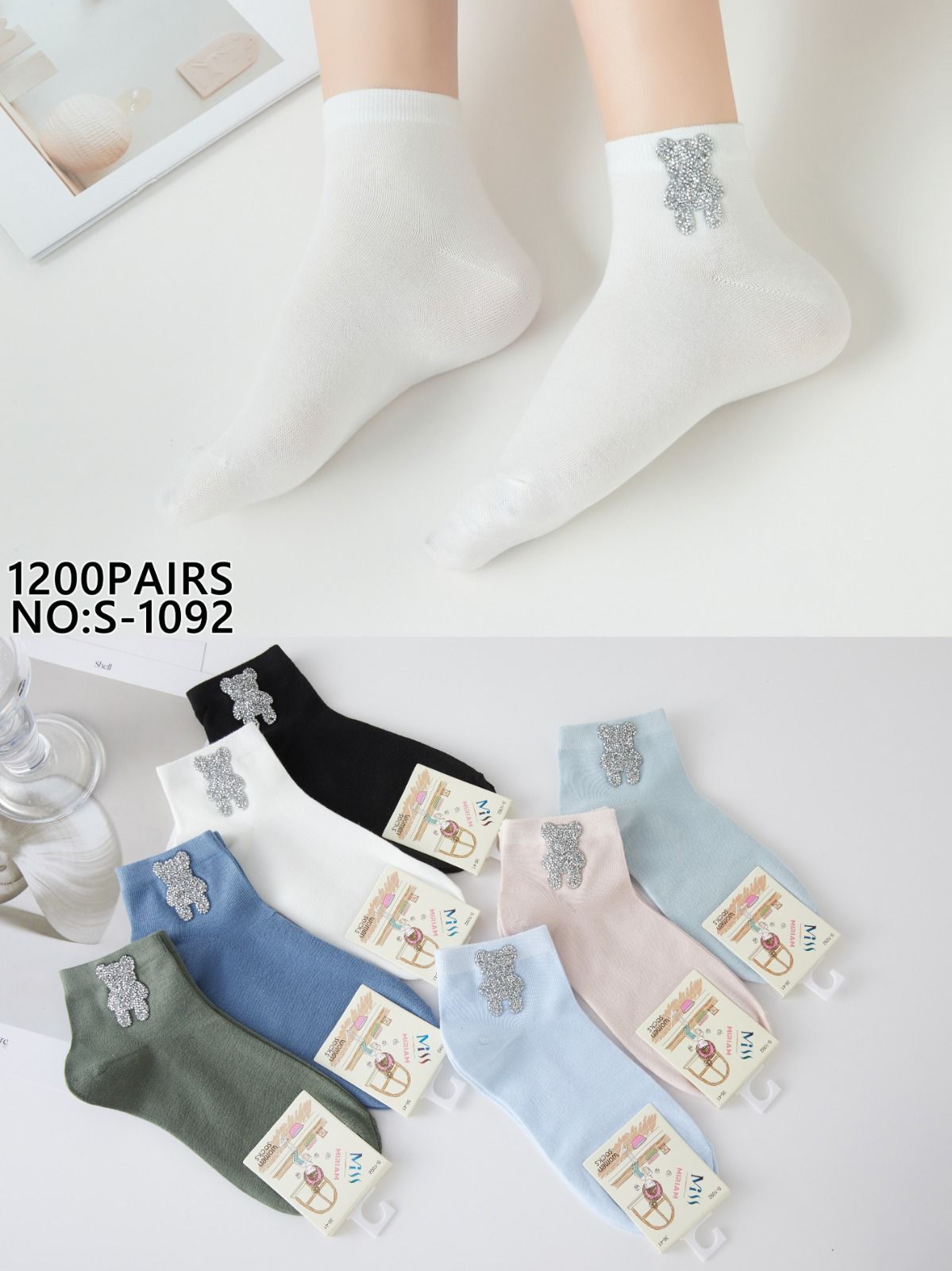 Calcetines de tobillo con aplicación de oso brillante-S-1092