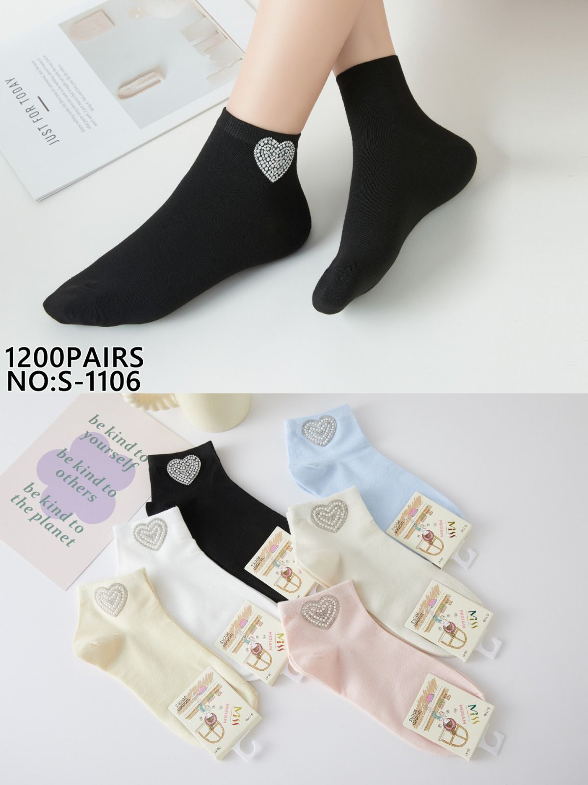 Calcetines tobilleros con corazón de pedrería-S-1106