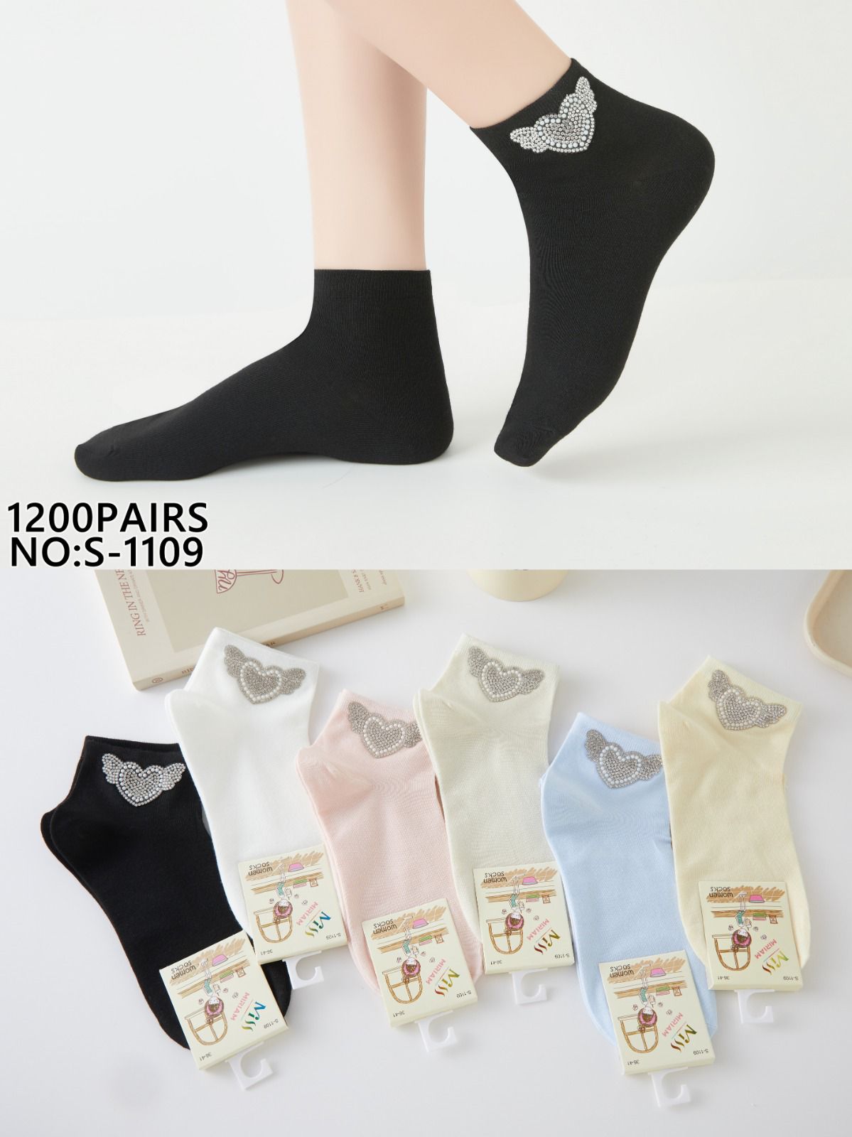 Calcetines tobilleros con detalle de corazón alado-S-1109