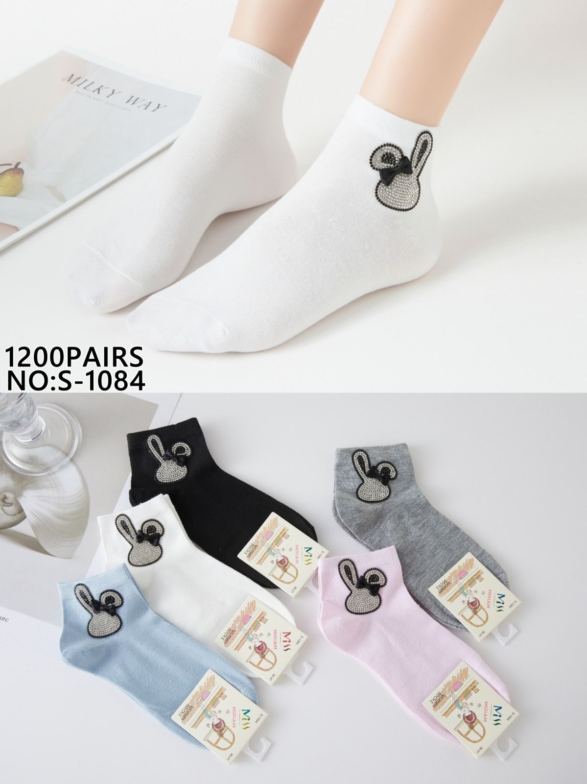 Calcetines tobilleros con diseño de conejo y moño-S-1084