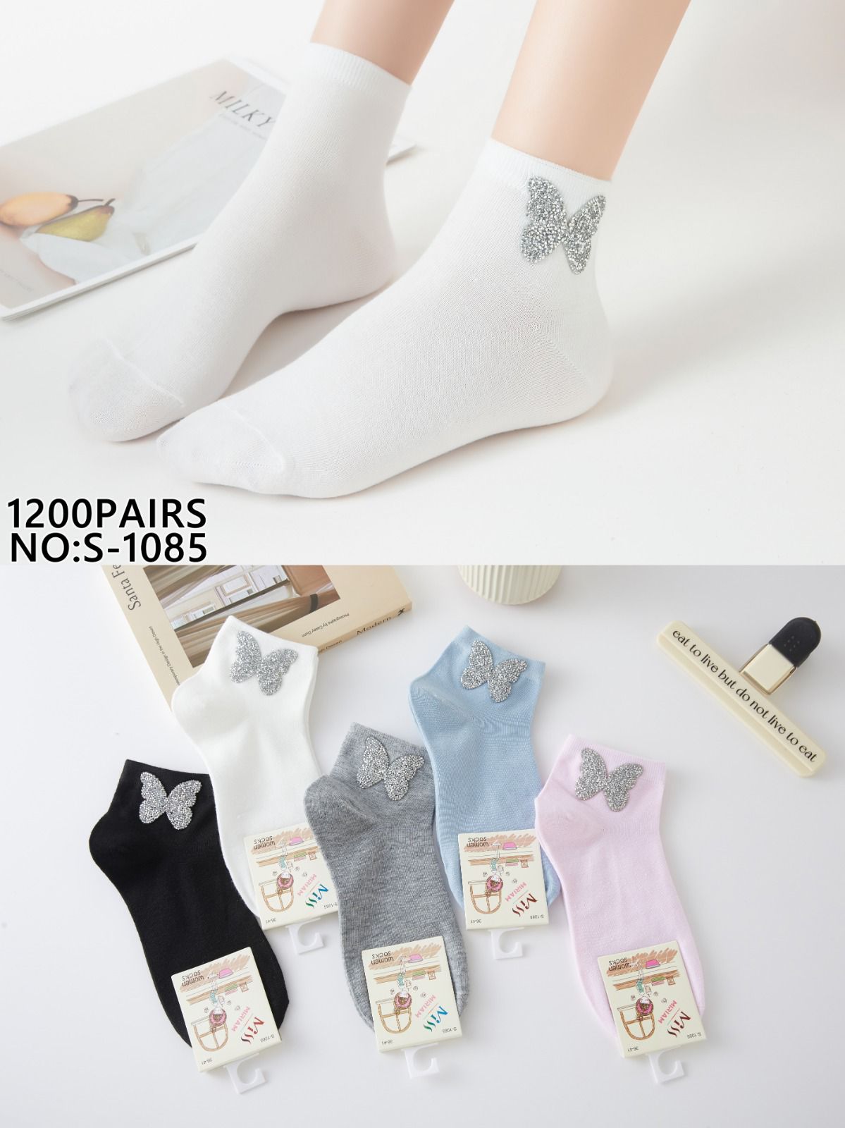 Calcetines tobillo con mariposa de brillo-S-1085