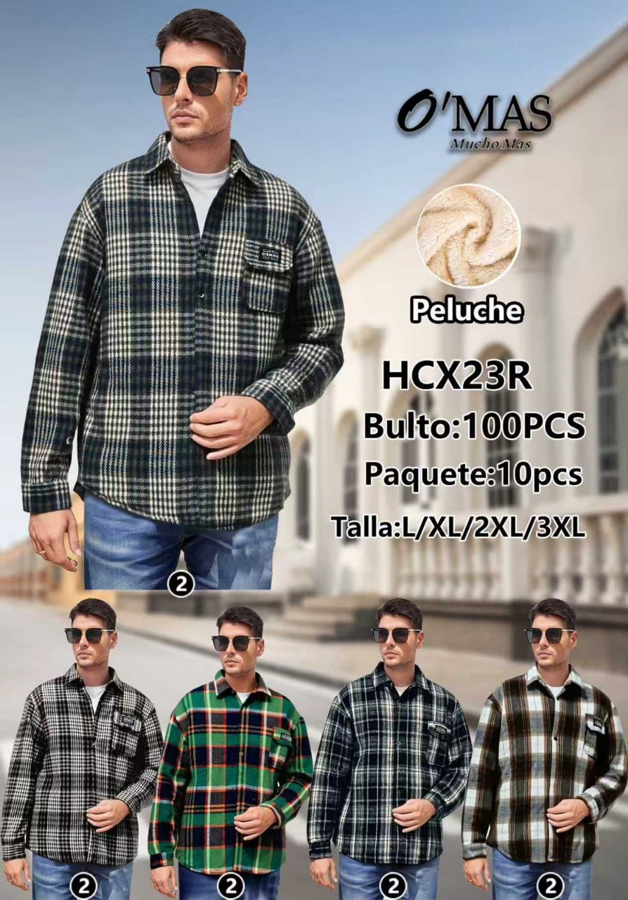 Camisa de franela a cuadros con forro de peluche-HCX23R