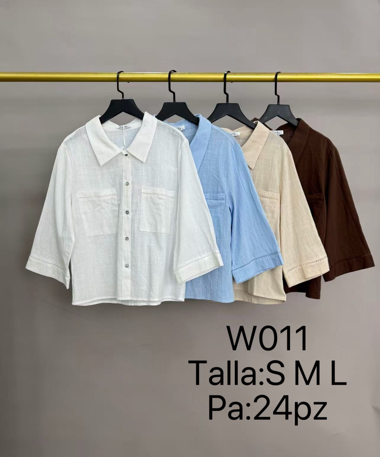Camisa de lino con dos bolsillos y manga 3/4-W011
