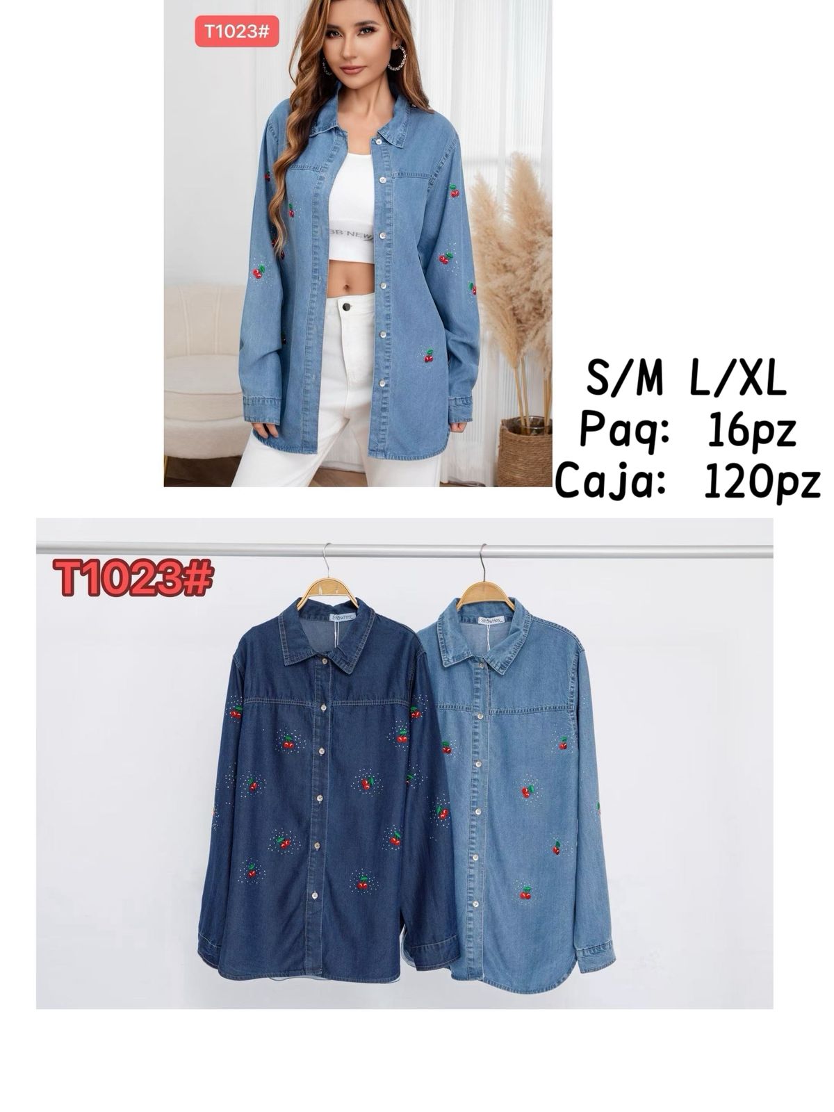 Camisa de mezclilla bordada-T1023