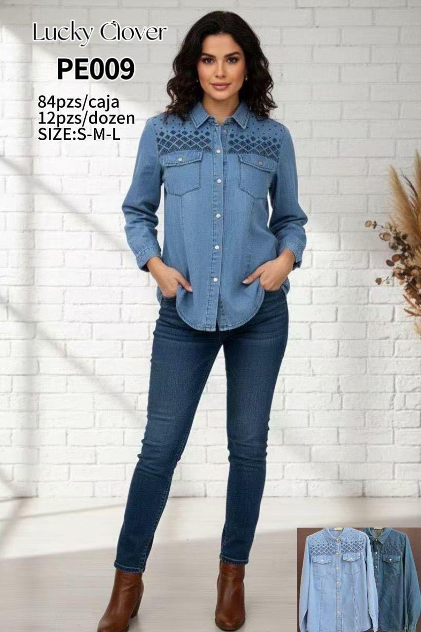 Camisa de mezclilla con diseño bordado-PE009