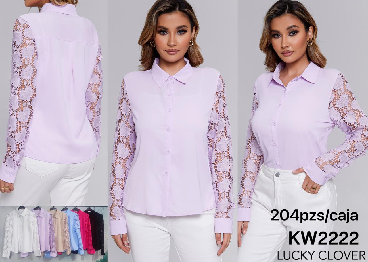 Camisa de Mujer con Mangas de Encaje de Corazones-KW2222