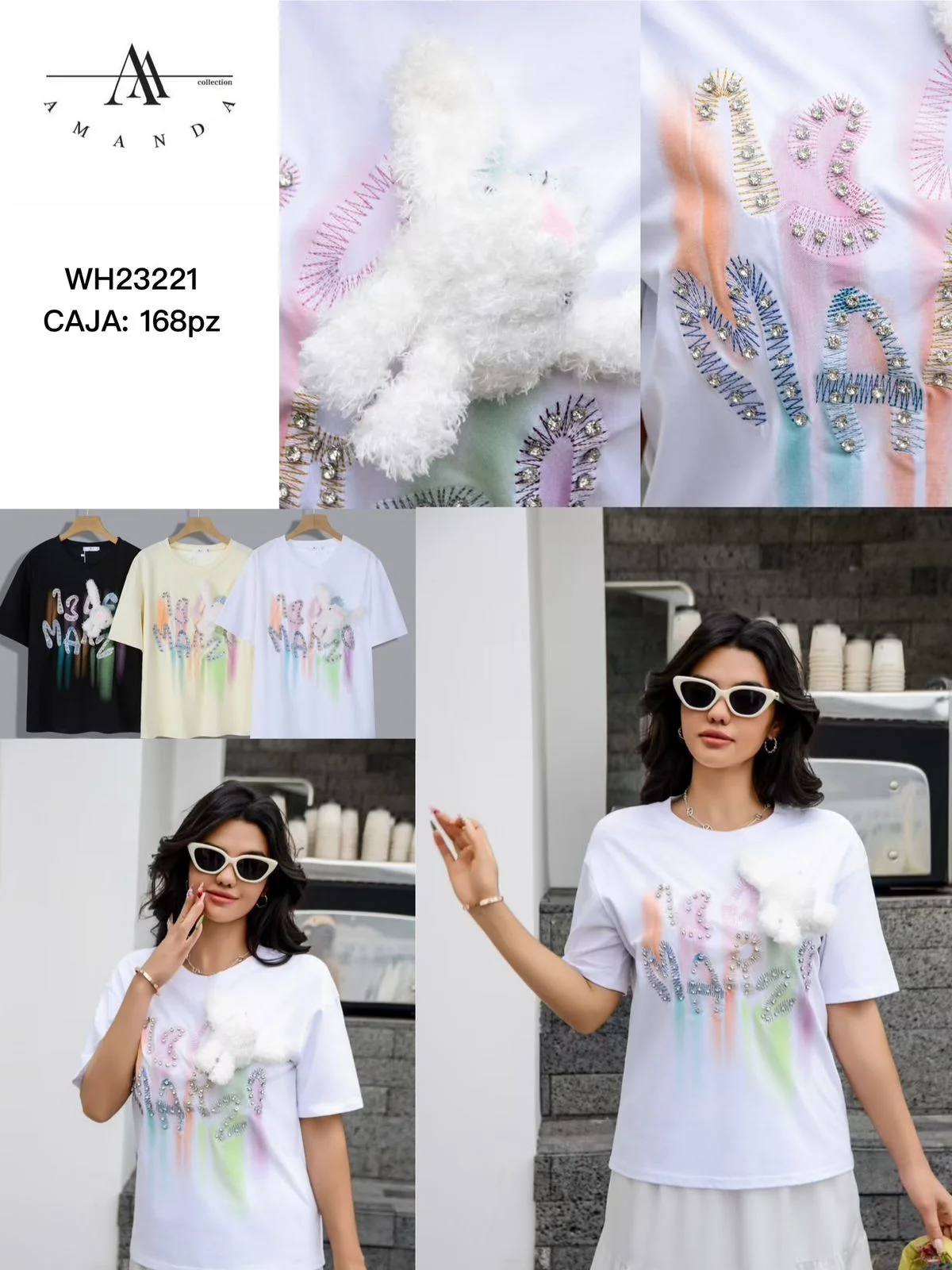 Camiseta con Adorno de Oso y Diseño-WH23221