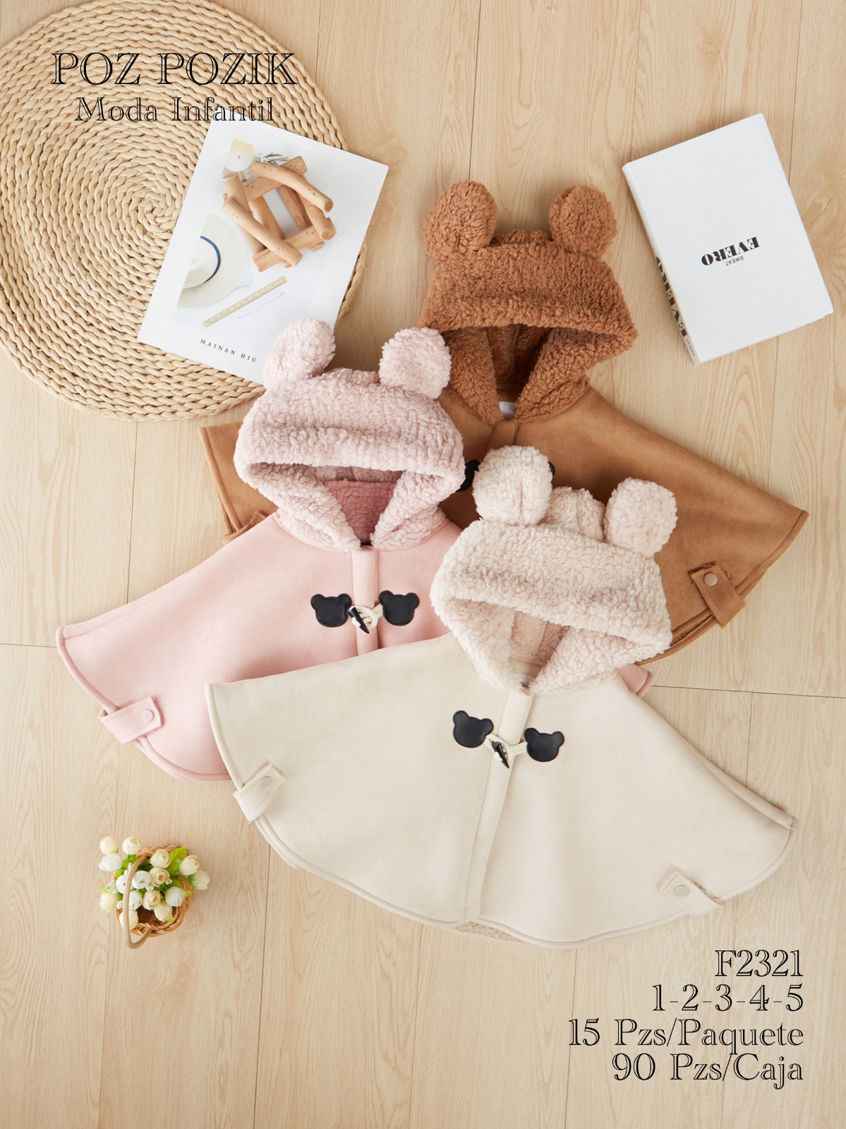 Capa con capucha de oso para niños-F2321