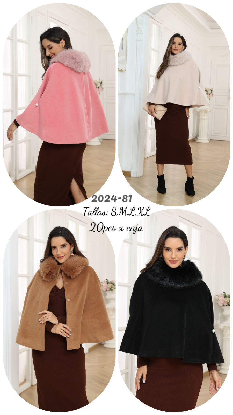 Capa con cuello de piel sintética-202481