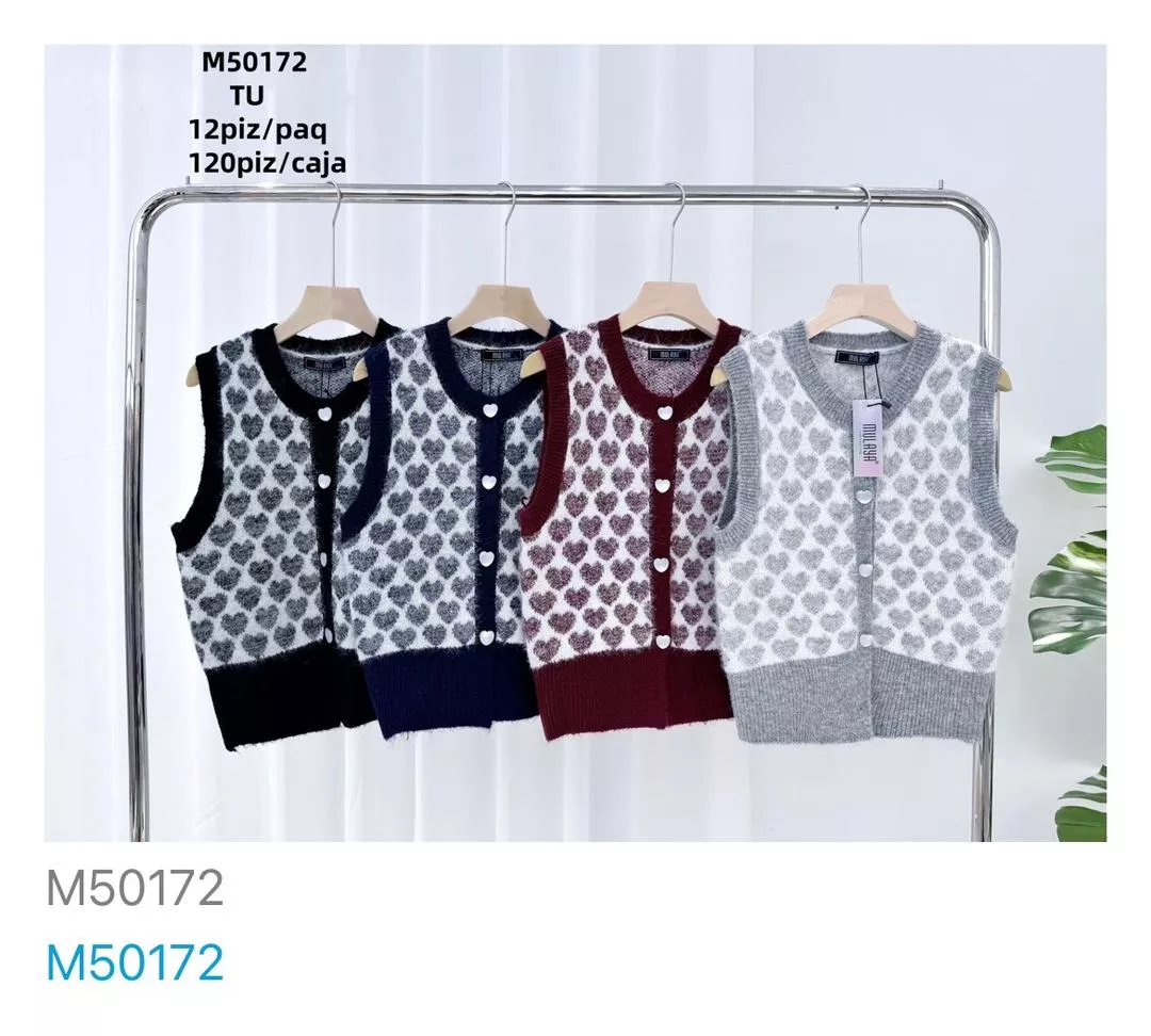 Chaleco de punto con diseño de corazones-M50172