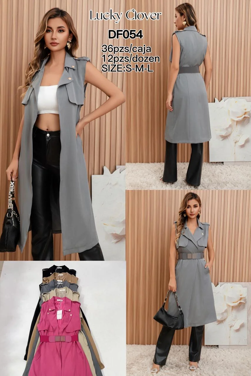 Chaleco largo con cinturón-DF054
