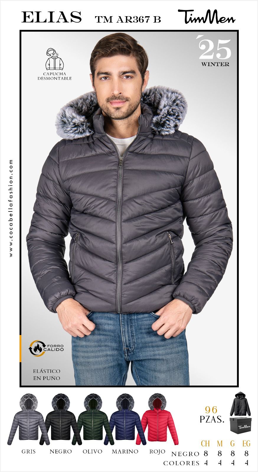 Chamarra Acolchada con Capucha Desmontable Elias-TM AR367 B