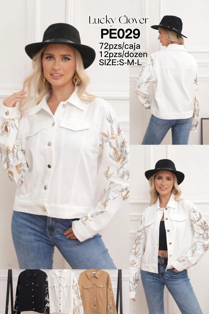 Chamarra de mezclilla con lentejuelas en las mangas-PE029