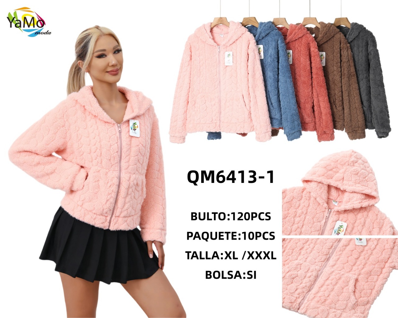 Chamarra de peluche con capucha-QM6413-1