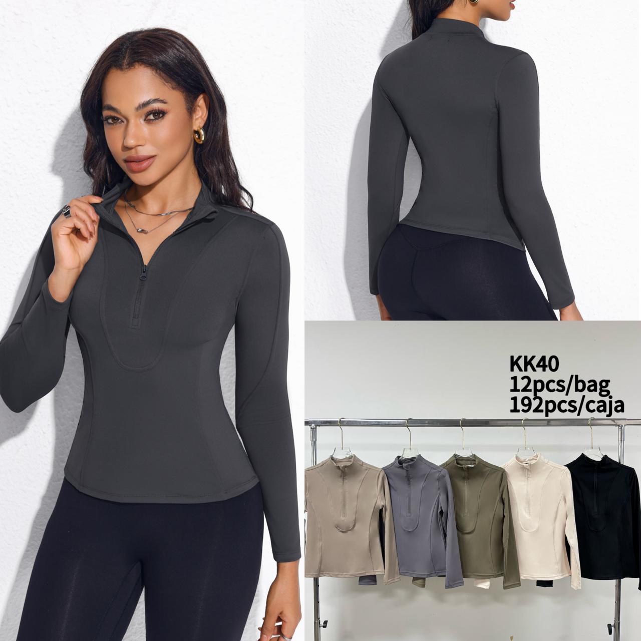Chaqueta de manga larga con media cremallera-KK40
