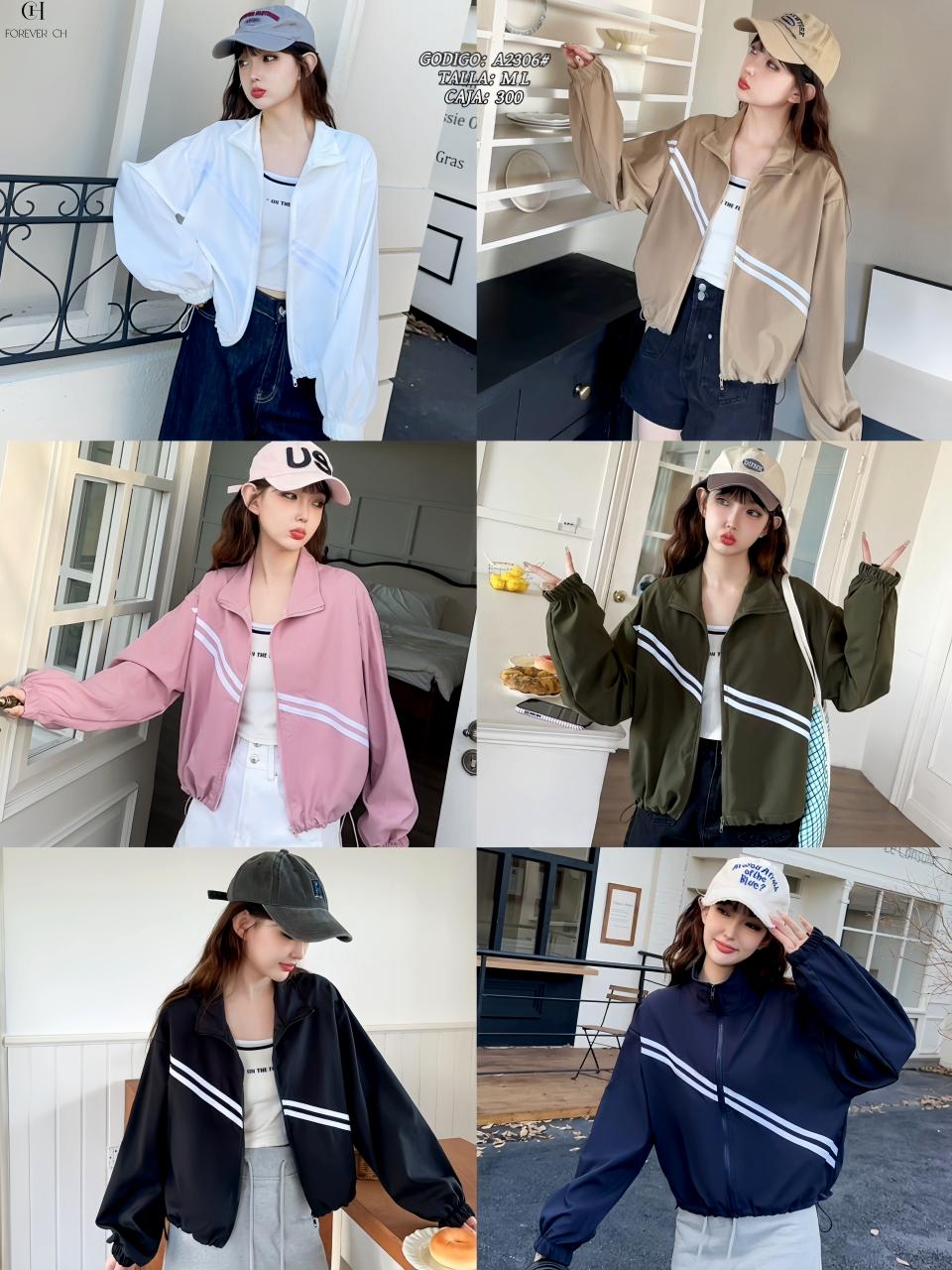 Chaqueta deportiva con cremallera y diseño de rayas-A2306