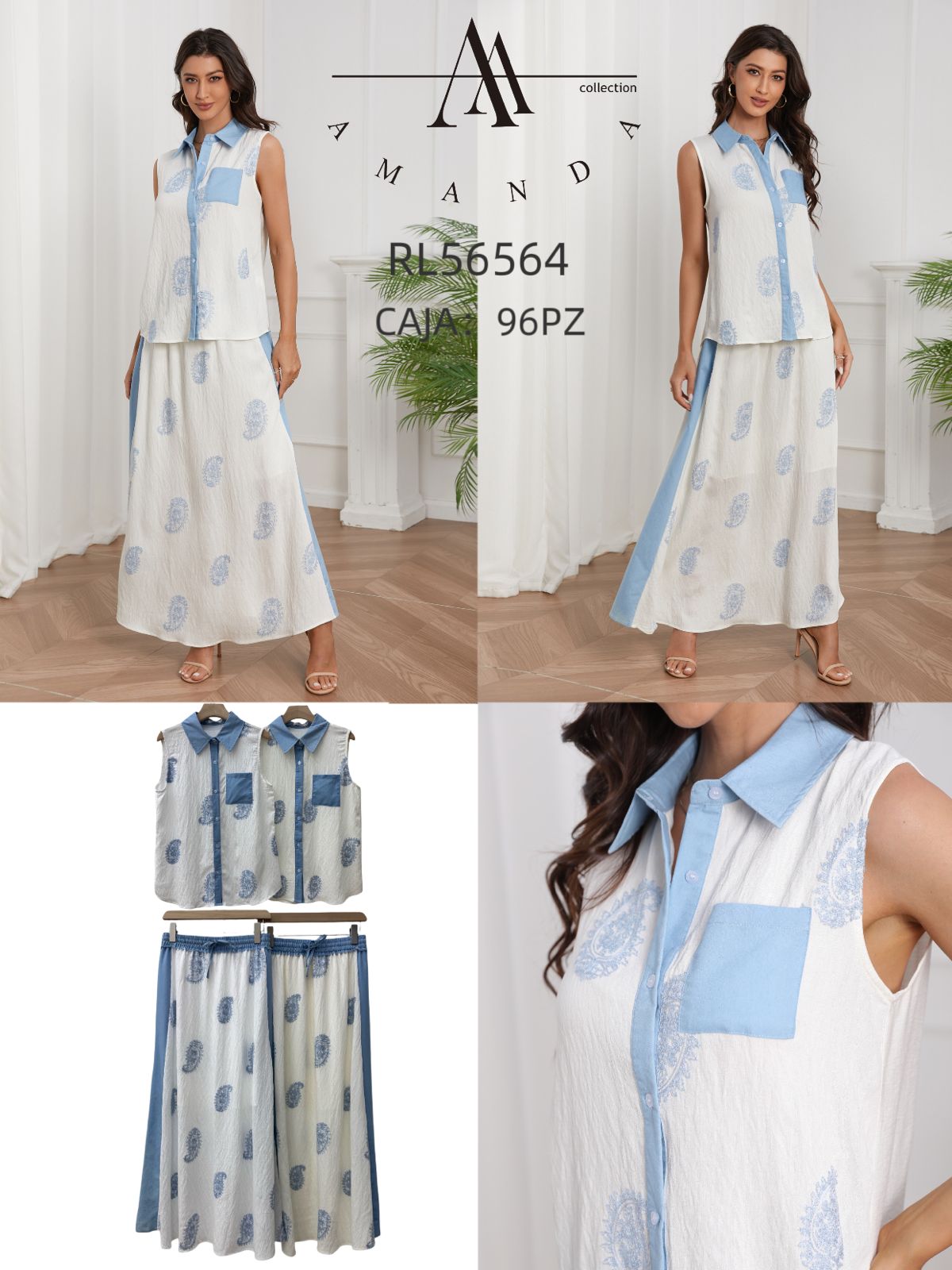 Conjunto blusa sin mangas y falda larga con estampado-RL56564