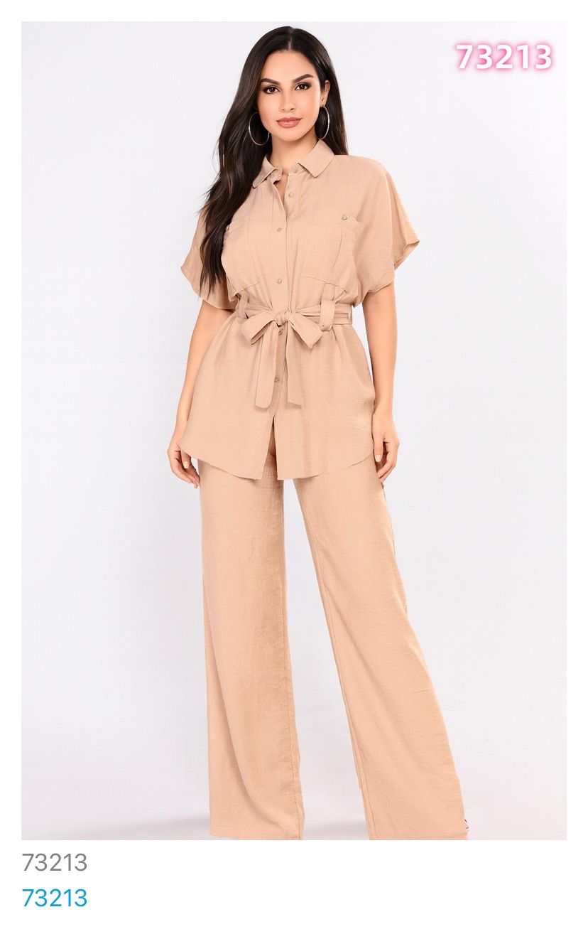 Conjunto casual de camisa y pantalón ancho-73213