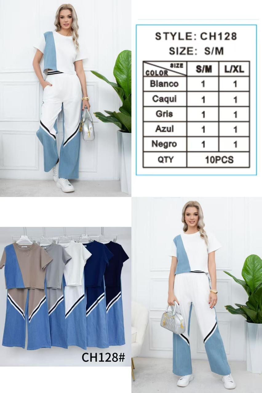 Conjunto casual de camiseta y pantalón ancho-CH128