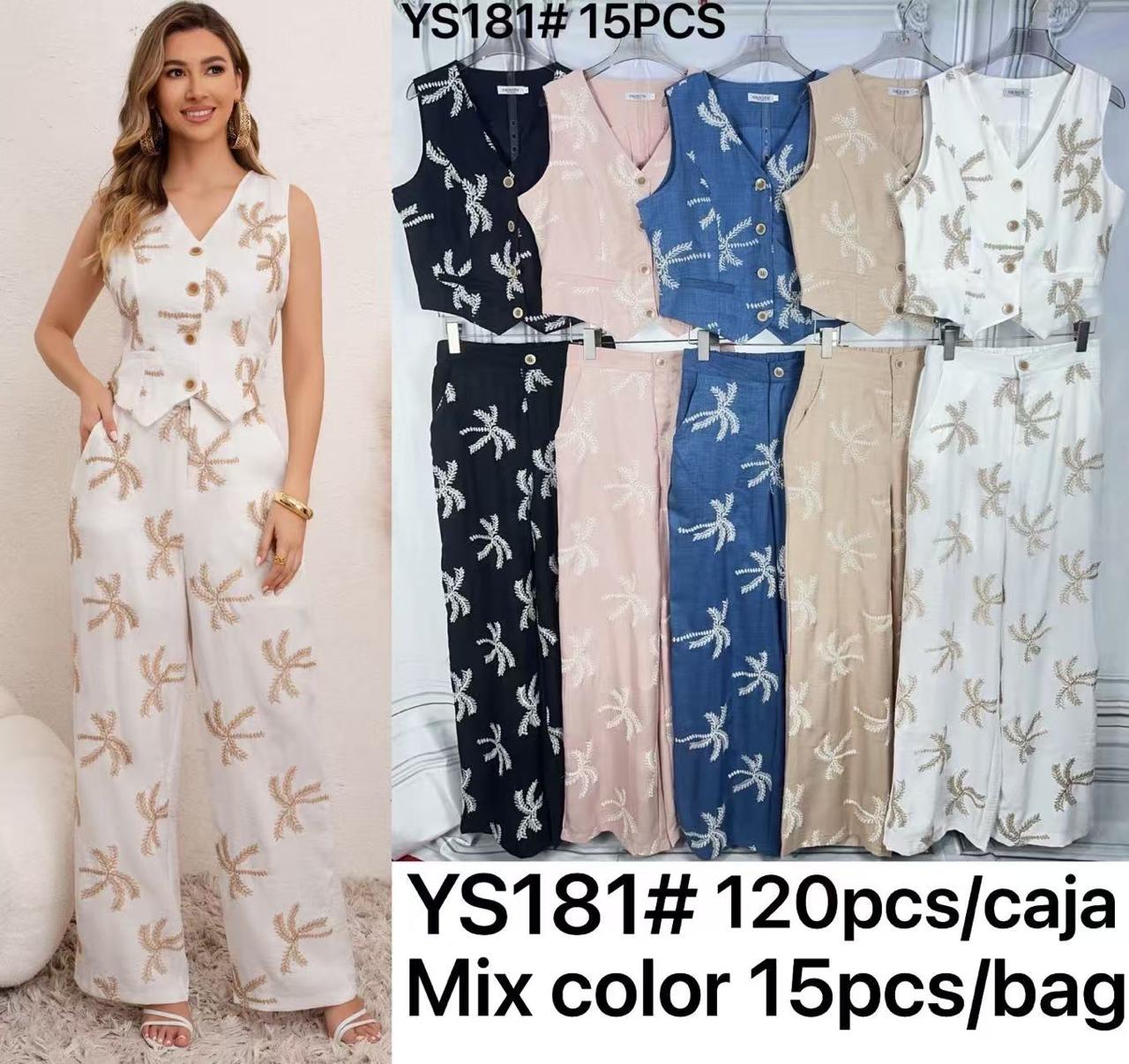 Conjunto Chaleco y Pantalón Estampado de Palmeras para Mujer-YS181