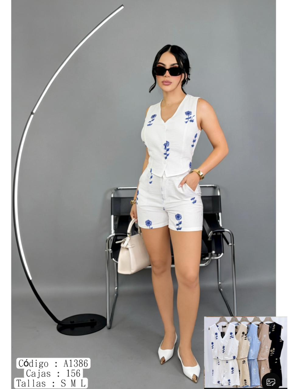 Conjunto Chaleco y Shorts Estampado Floral-A1386