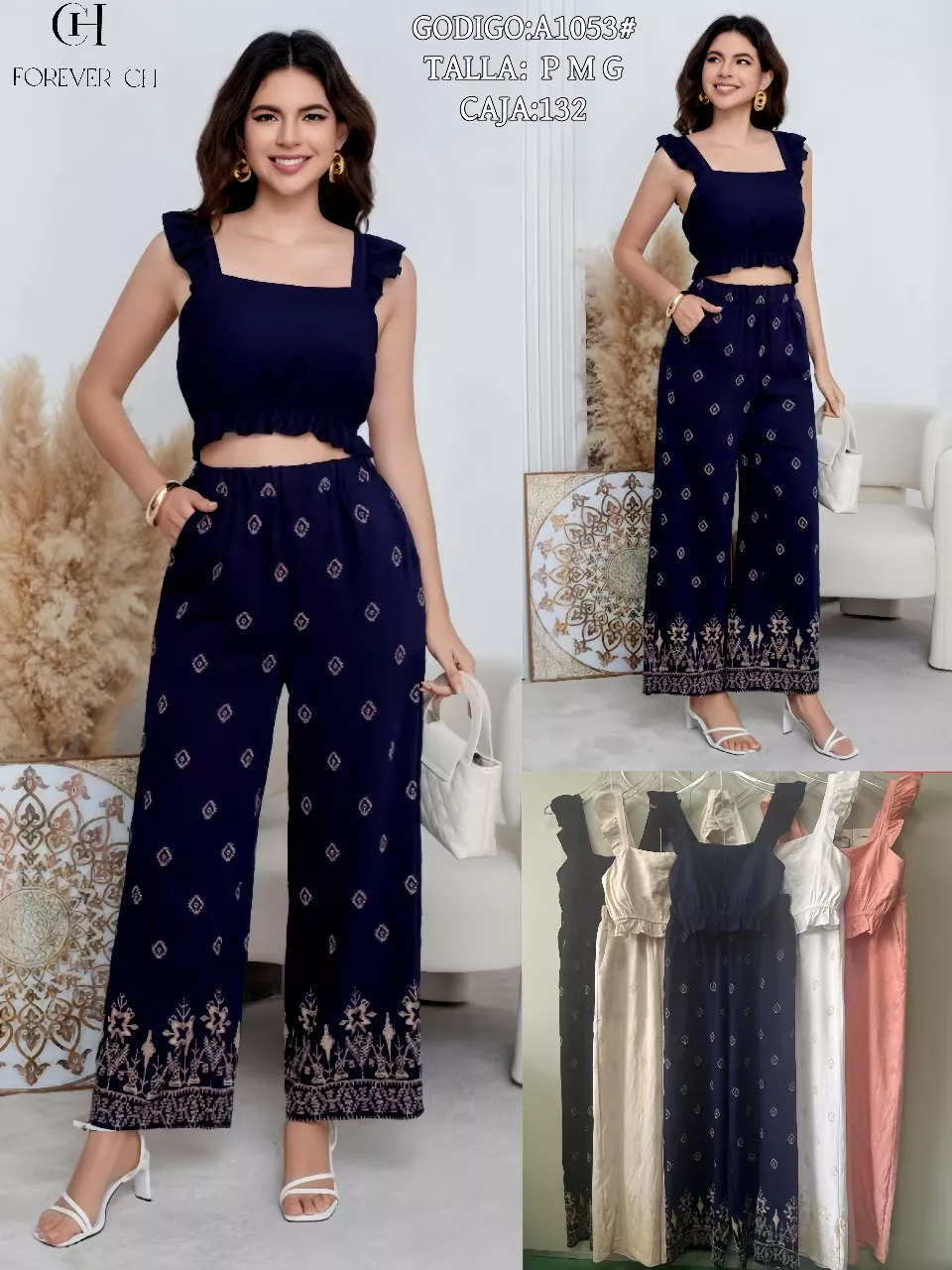 Conjunto Crop Top y Pantalón Estampado-A1053