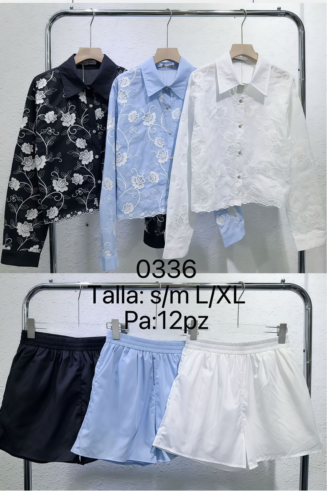 Conjunto de blusa con bordado floral y shorts-0336