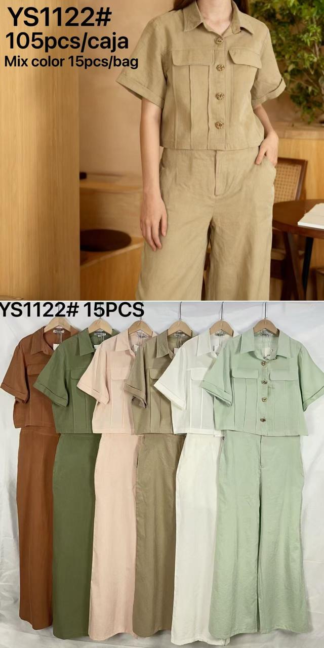 Conjunto de Blusa de Manga Corta y Pantalón Ancho-YS1122
