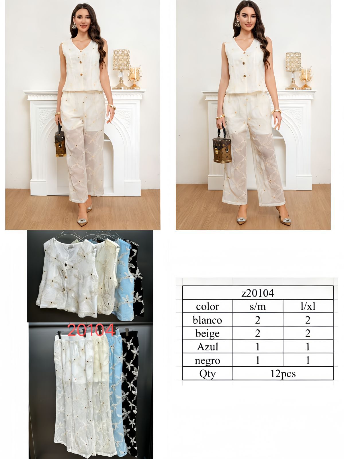 Conjunto de blusa sin mangas y pantalón de pierna ancha con bordados-Z20104
