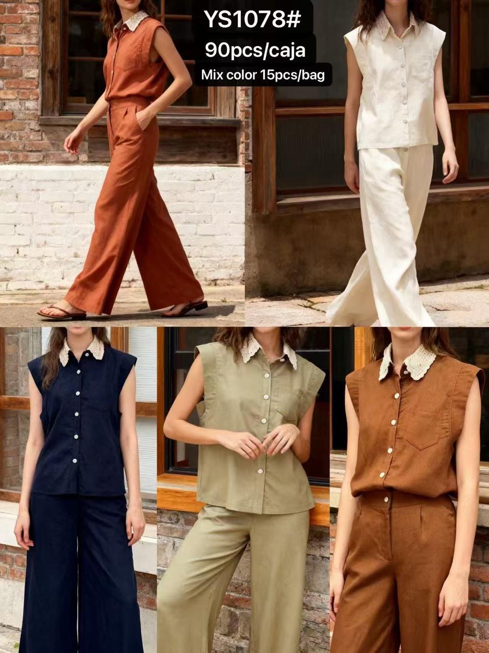 Conjunto de blusa sin mangas y pantalón de vestir-YS1078